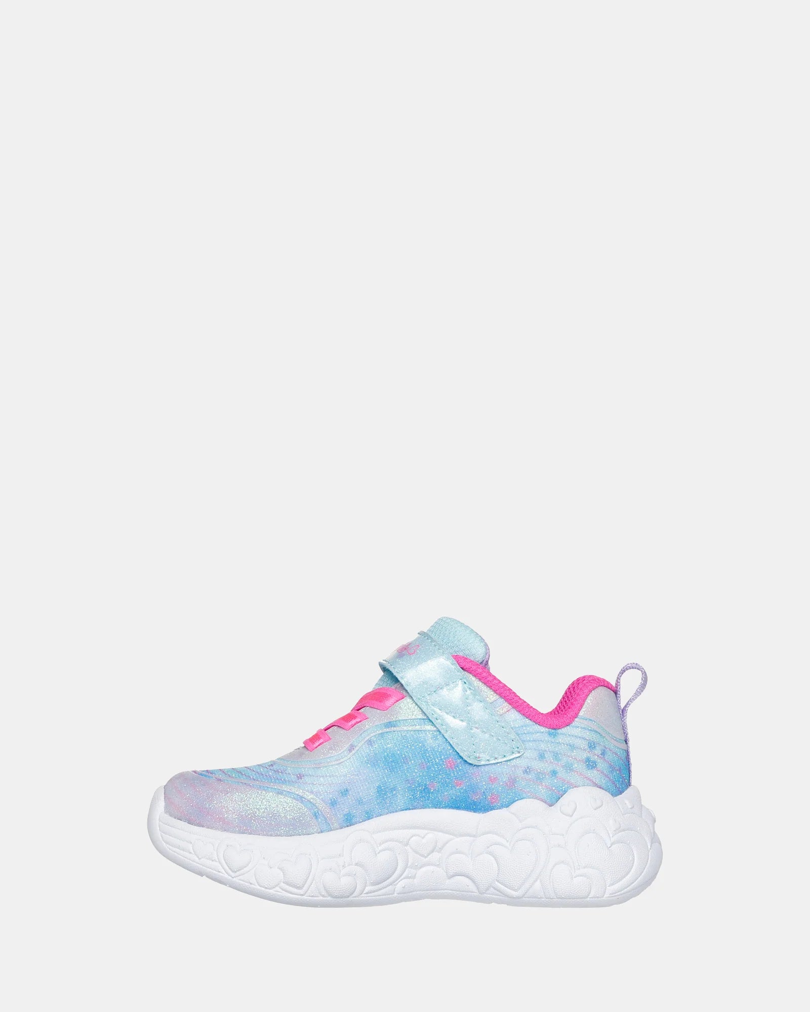 Sporty style gets lit-up and lovable with Skechers S-Lights®: Eternal Heart Lights. This lighted design features a sparkle mesh and synthetic glitter upper with stretch-laced front, and a Skechers adaptive closure.